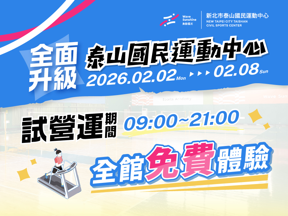 泰山國民運動中心 02/02-02/08 試營運期間全館免費